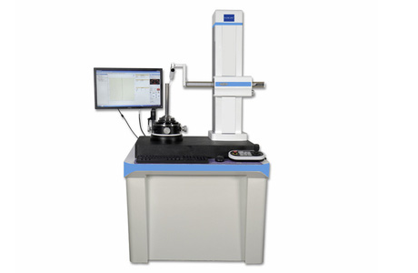 采用半径测量法,工件旋转式。运用高精度气浮主轴作为基准,采用精密圆光栅、精密电感位移传感器和计算机组成。对被测工件进行计量角度、径向位移量,保证测量工件的角位移、径向值的精确度;测量软件采用基于中文版Windows操作系统平台的DTP系统测量软件,完成数据采集、数据处理及打印输出等工作。